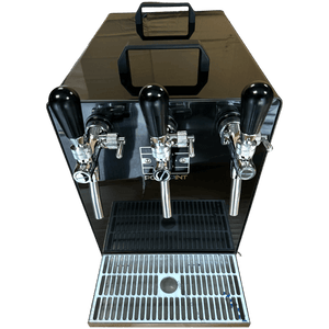 Triple tap draught beer keg dispenser with built in air compressor, and cooler, pouring up to 260 ice cold pints per hour. Designed for high throughput events.